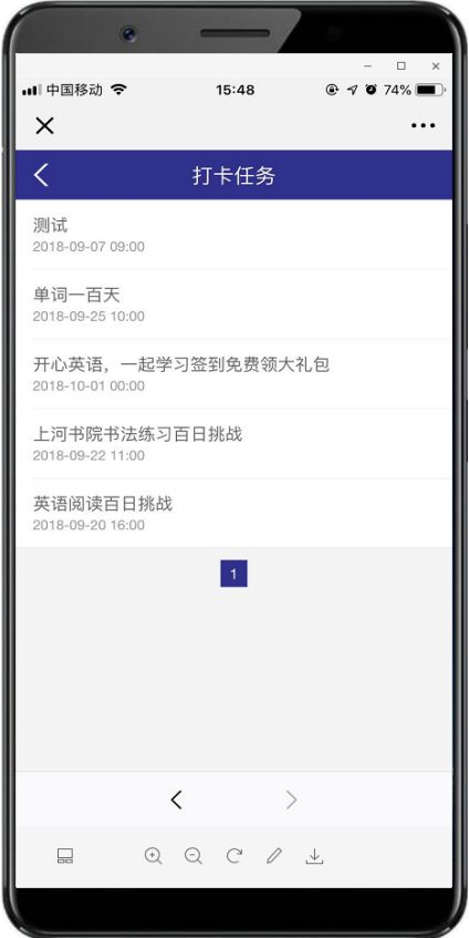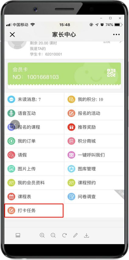 在家长端添加了打卡任务入口,家长可以方便快捷的参与打卡任务。可以提高家长的活跃度。点击进去会看到相应的打卡活动,即可点击参与。