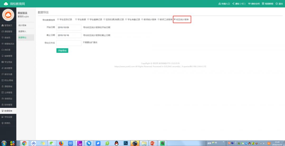 数据导出区分主,分校区数据以前是无论总校区账号还是分校区账号都可以导出总校区报表,不利于管理。现在分校区账号只能导出自己校区的报表。