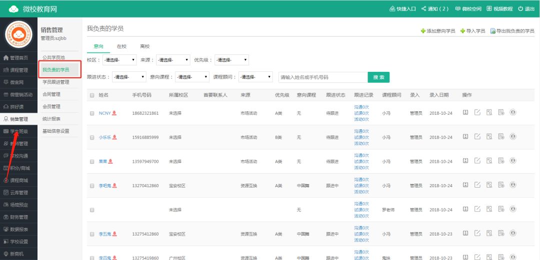 从意向学员资料收集到转为正式学员、持续跟踪全流程管理