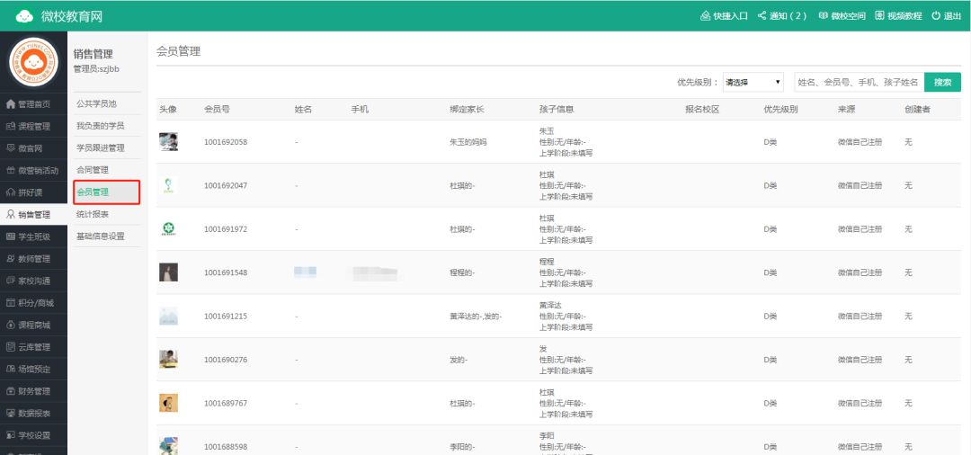 会员是所有绑定有学员的家长或者说是付费用户。这是机构最主要的也是最需要维护的关系。