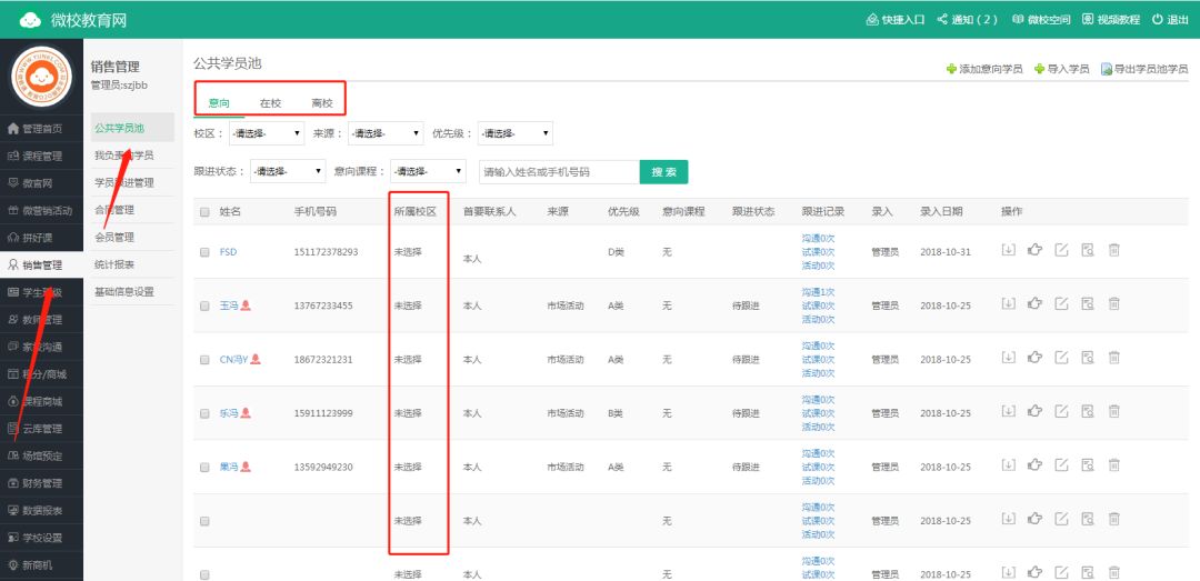 公共学员池意思就是你所在的校区,目前还没有分配或者领取的学员的列表。