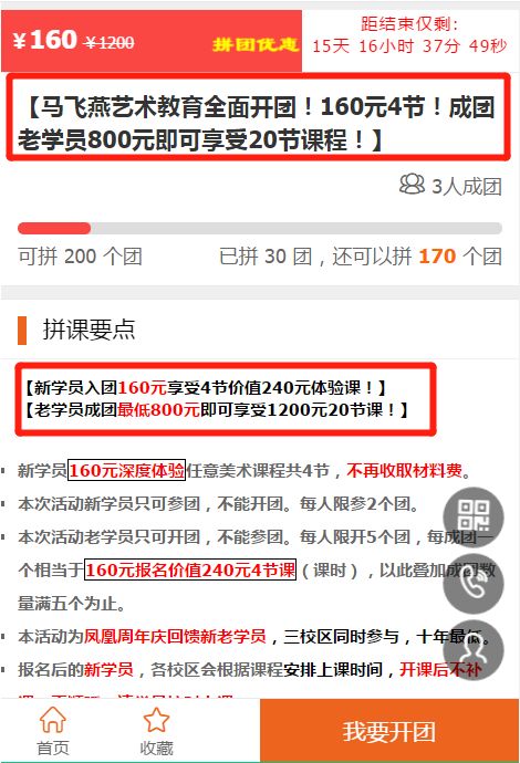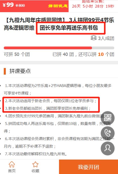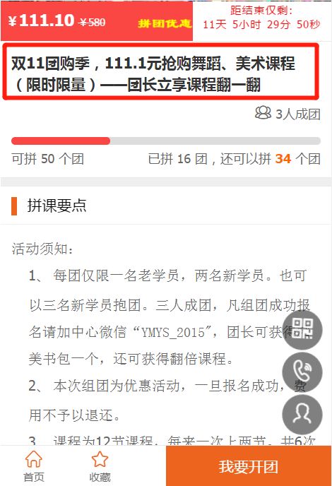 示例二:鼓励新学员参与拼课做团长,设置团长优惠福利激烈他们进行转发